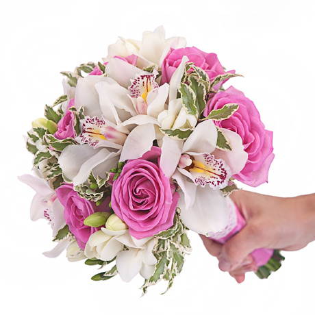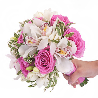 Состав букета: орхидея, розы 9, фрезия 5, питоспорум 7.