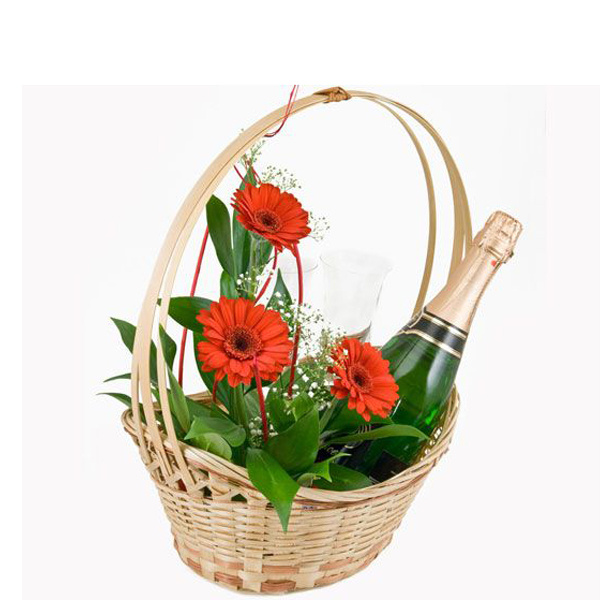Состав: шампанское "Советское", рускус 5, герберы 3, гипсофила 1.