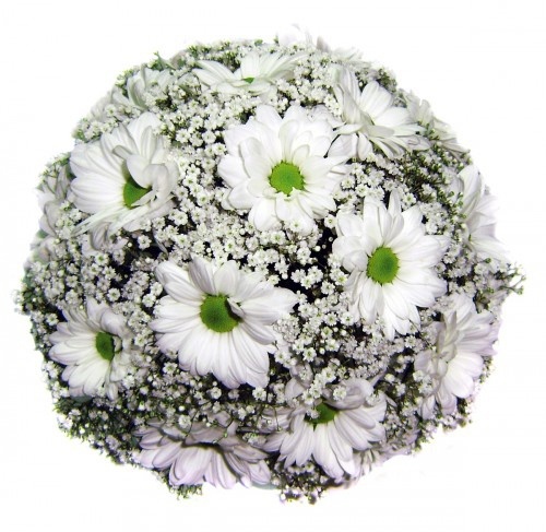 Состав: хризантема(6), гипсофила, декоративная зелень.