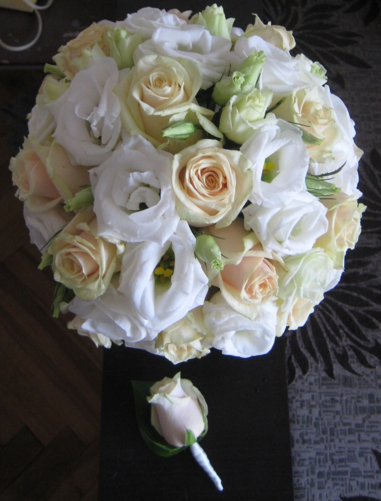 Состав: белая эустома(10), роза бежевого цвета (19).