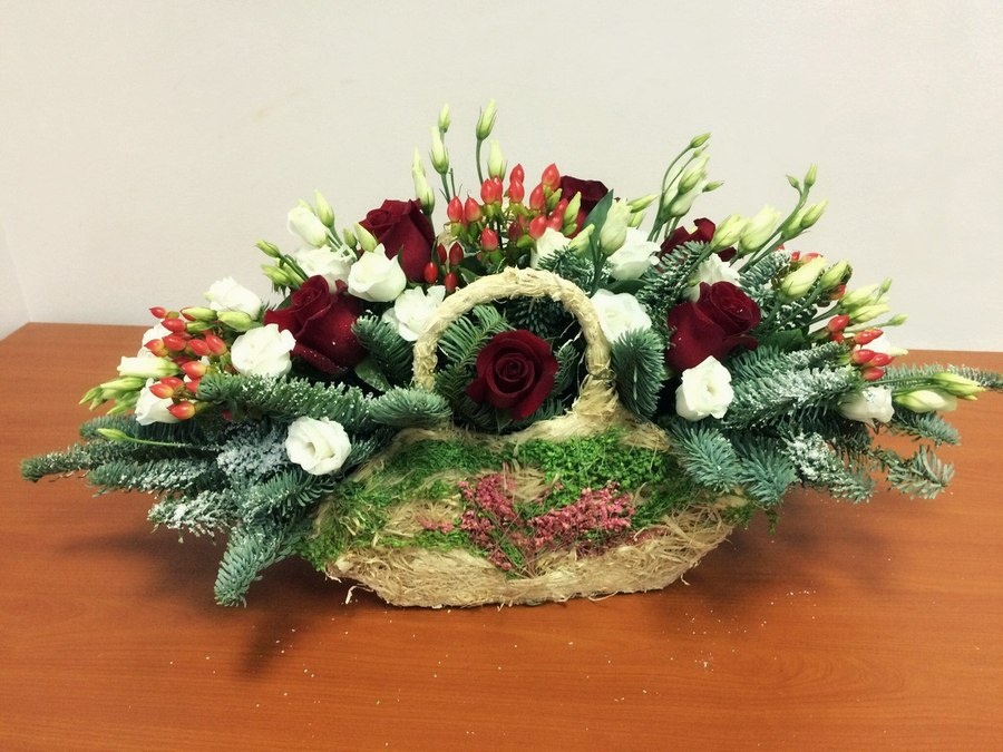 Состав: гиперикум, роза,ель, эустома