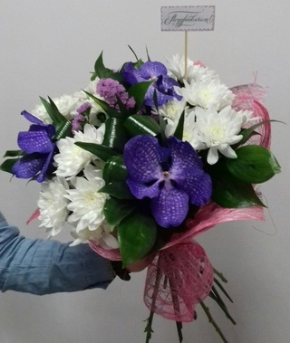 Состав: ванда, хризантема, рускус, статица, аспедистра.