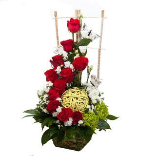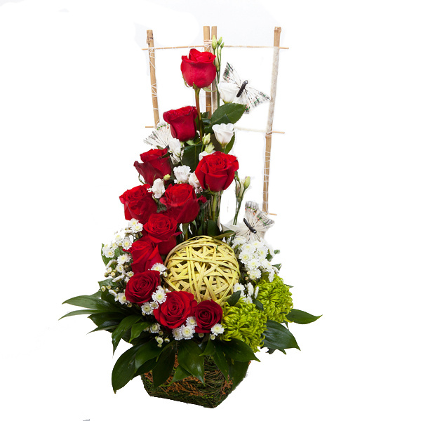 Оформление: корзина, бабочки, шар ротанг, бамбук.